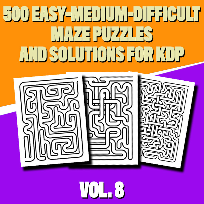 500 3 Levels (Easy, Medium, Difficult) Maze Puzzles with 500 Solutions KDP Interior Pages Vol. 8